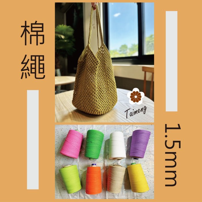 台孟牌 染色 棉繩 1.5mm 35色 大包裝 台灣製造 Macrame 天然純棉 細棉線 毛線 鈎針 三股繩 棉蠟燭芯