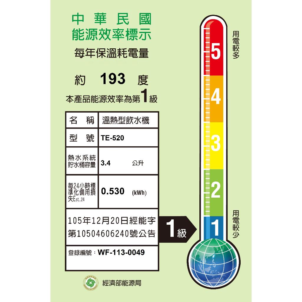 ✿找我最便宜✿TE-520【東龍】1級能源效率冷熱桌上型自動補水飲水機