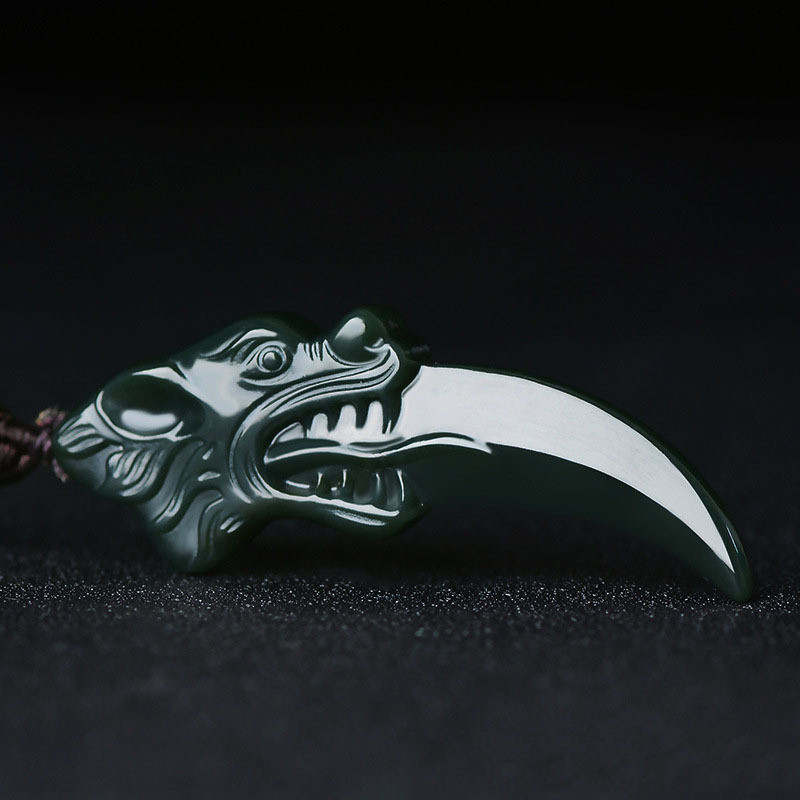 天然和田玉石項鍊 開光青玉狼牙項鍊吊墜 男款獸玉墜吊飾 大氣豪邁玉掛件 轉運保平安吊飾 開運項鍊(已開光)