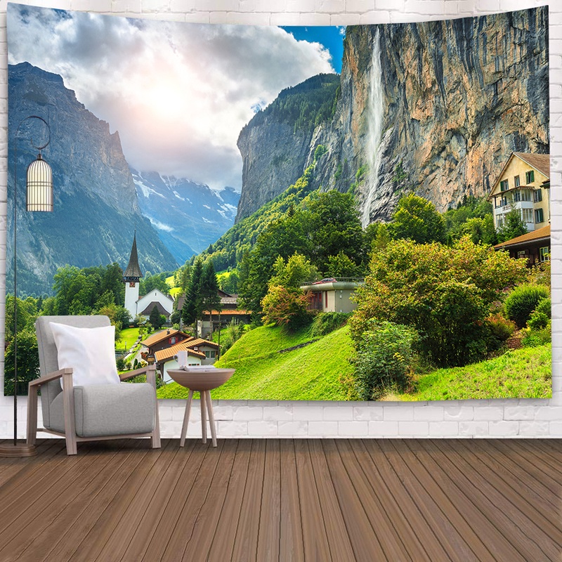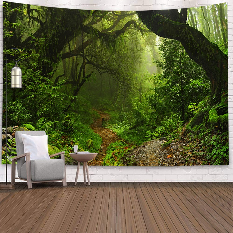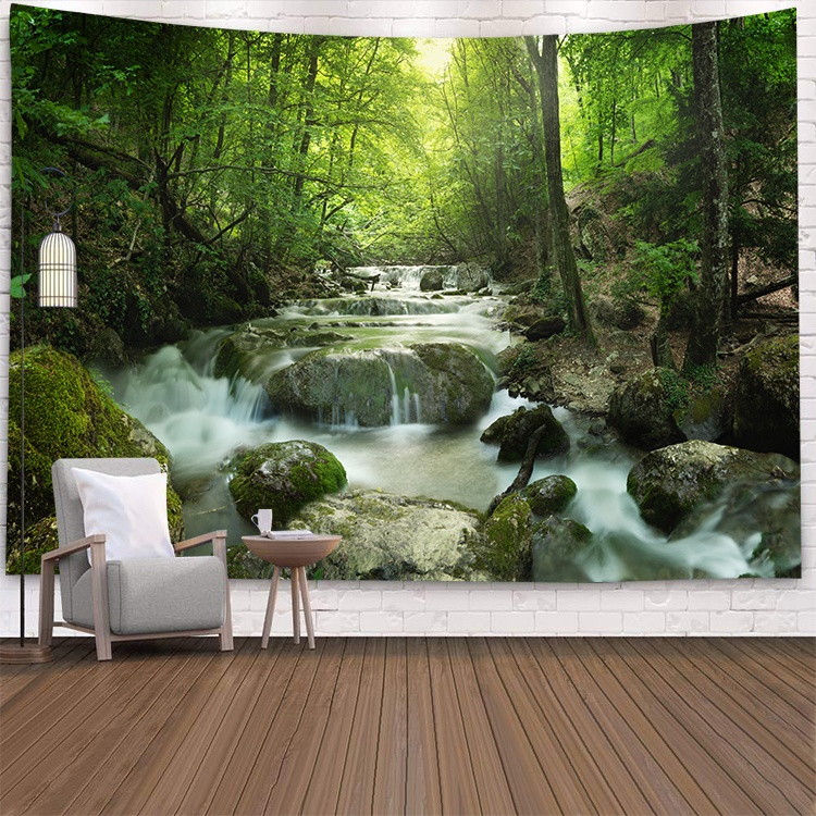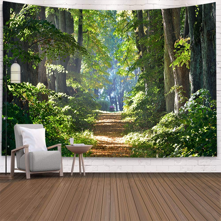 自然風景森林山脈掛布背景布節日派對裝飾ins網紅直播道具辦公室客廳裝飾背景牆布訂製款掛毯電視背景牆房間臥室裝飾畫牆布