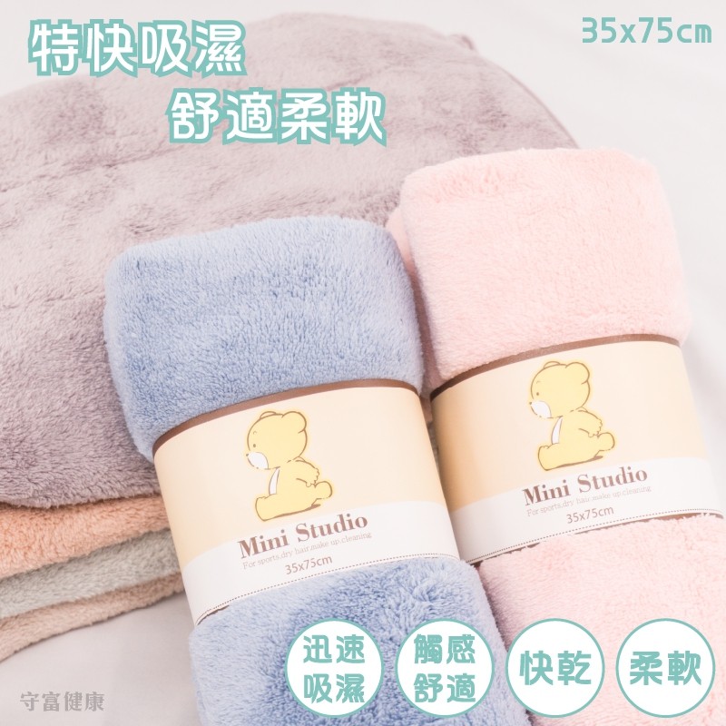 『現貨』Mini Studio細綿柔膚超吸水毛巾35*75cm 超細纖維 吸水浴巾 瞬吸 細膩柔軟 掛耳 掛吊 包頭巾