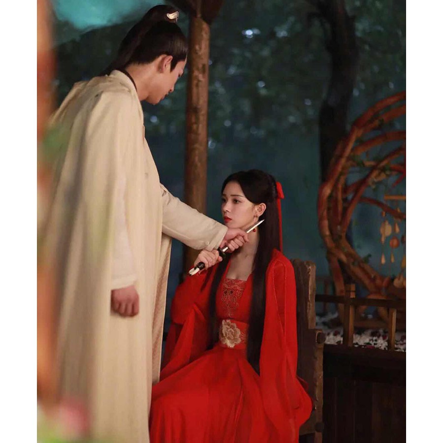陳瑤同款紅色古風髮帶髮繩古裝少女紅妝配飾雪紡長飄帶漢服頭飾品