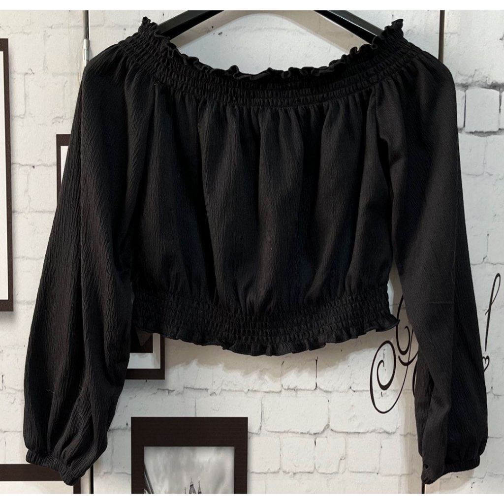 DIVIDED by H&M瑞典品牌黑色領口、衣緣多鬆緊帶設計短版長袖上衣