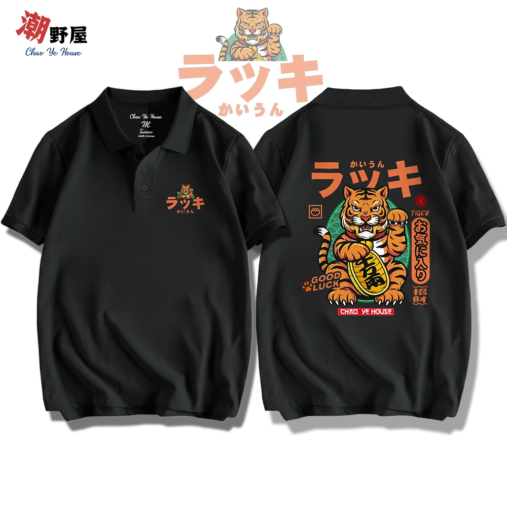 潮野屋 開運猛虎 招財 好運 老虎 POLO衫 短T 衣服 短袖上衣 潮T 可愛 潮流 街頭 WPD-1228