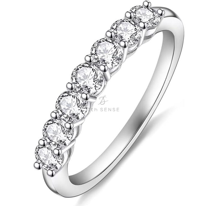 【𝟳𝘁𝗵 𝗦𝗘𝗡𝗦𝗘】S925純銀莫桑鑽戒指 七星排戒 可疊戴新娘婚戒 18K鉑金質感 莫桑石對戒 情侶戒指 婚禮配件