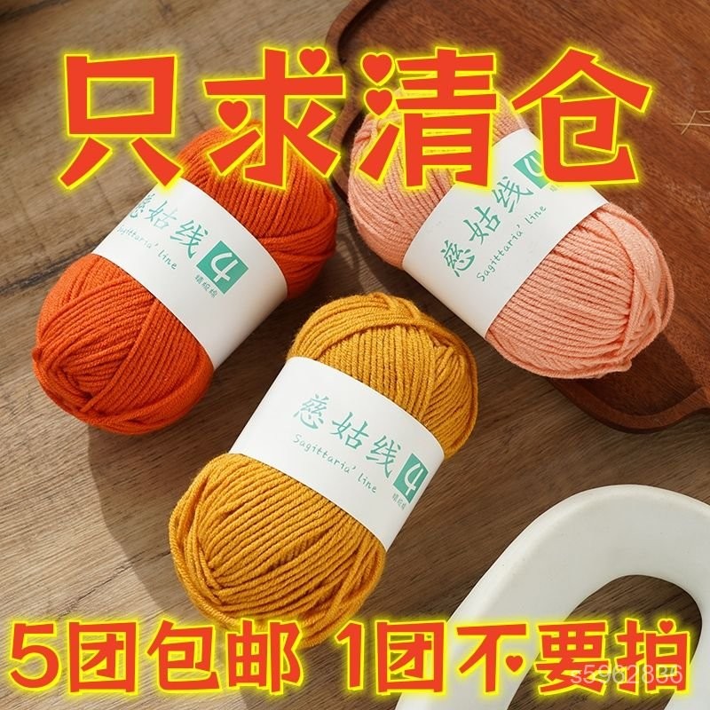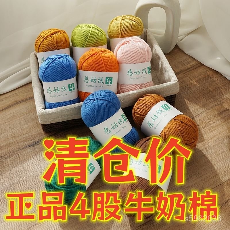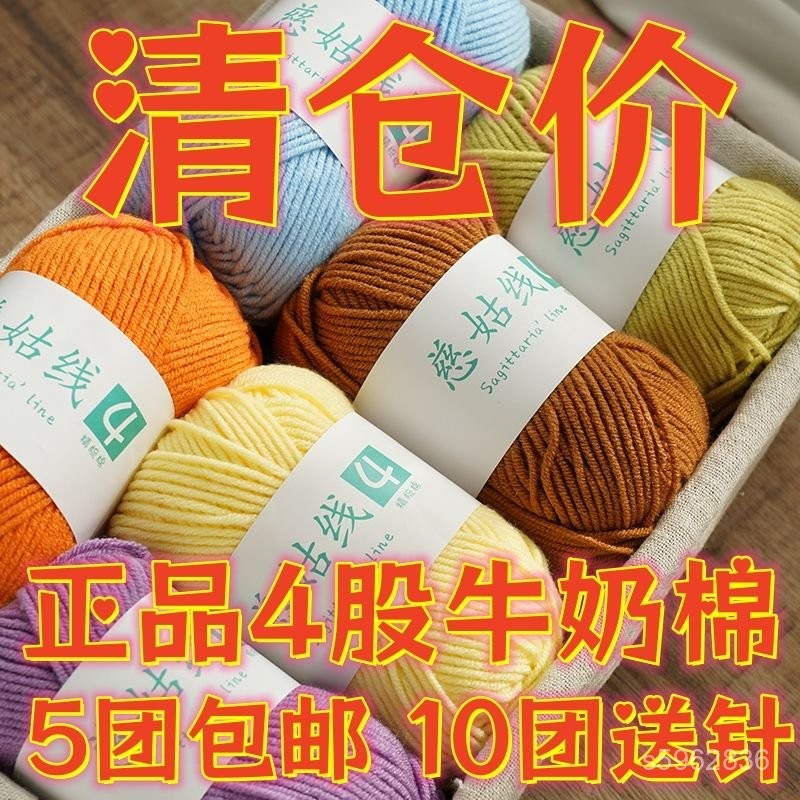 💯臺灣出貨💯免運💯股牛奶棉手工編織毛綫diy材料包毛綫團批髮毛綫團特價清倉批髮價 05SR