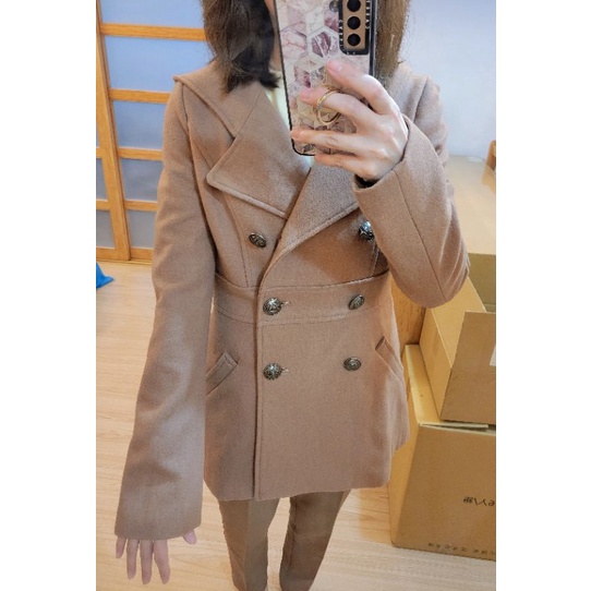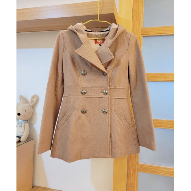 Knights Bridge 學院風60%羊毛大衣雙排釦連帽外套 S號 騎士領 中長版 修身版型