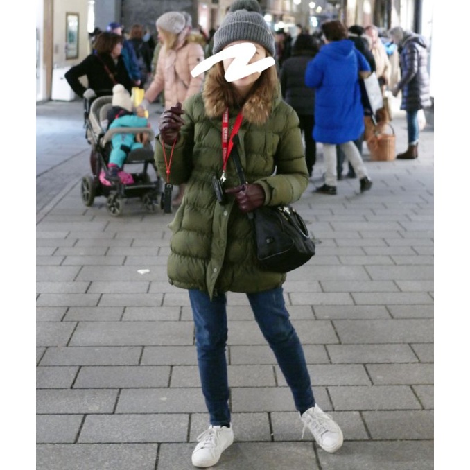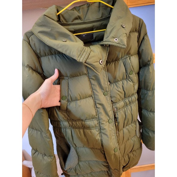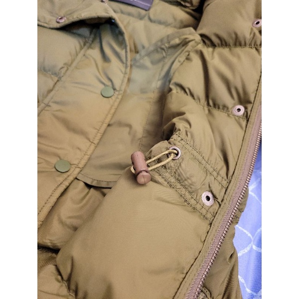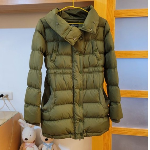 百貨品牌2% 不對稱翻領抽繩縮腰中長版羽絨外套 附毛領