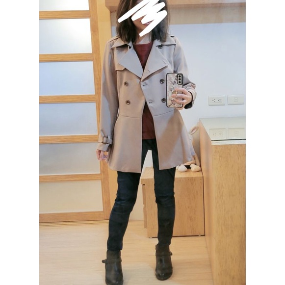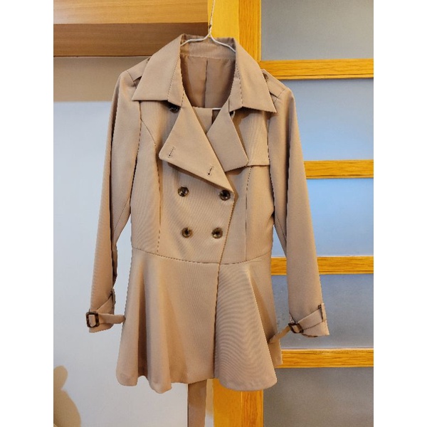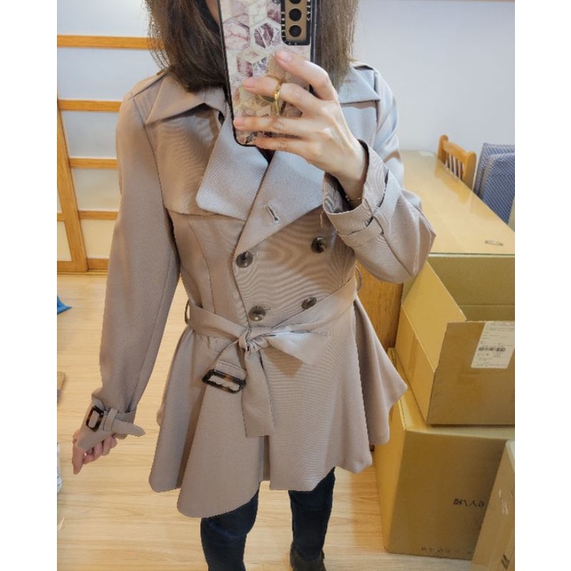 全新 正韓貨-我可能不會愛你程又青風衣-雙排釦翻領下擺傘狀修身風衣外套附腰帶