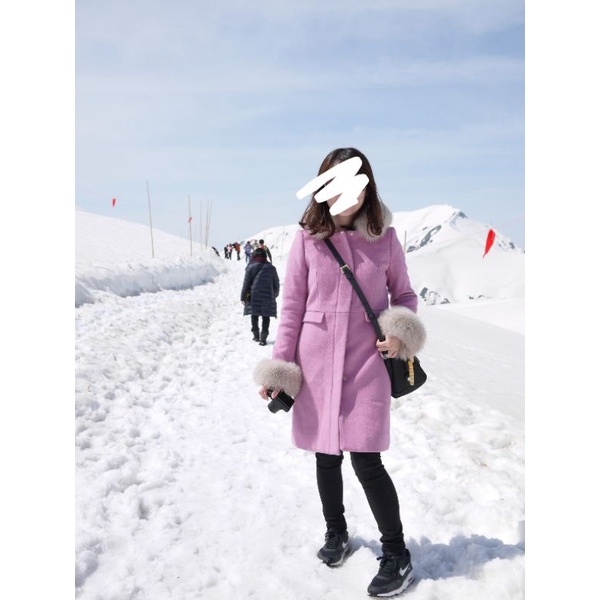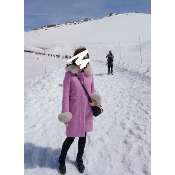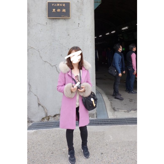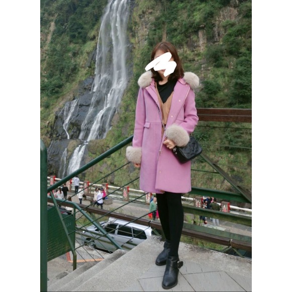 日貨 MIIA狐狸毛領混羊毛百搭經典5WAY大衣外套 粉紫色S號 9成新