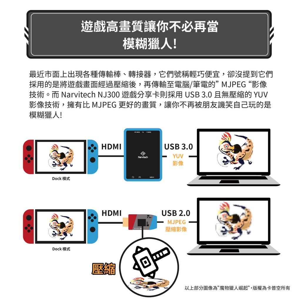 新手實況入門款【Narvitech】NJ300 4K遊戲擷取盒 PS5、Switch2轉接至PC/筆電上遊玩 直播