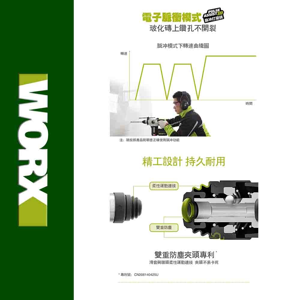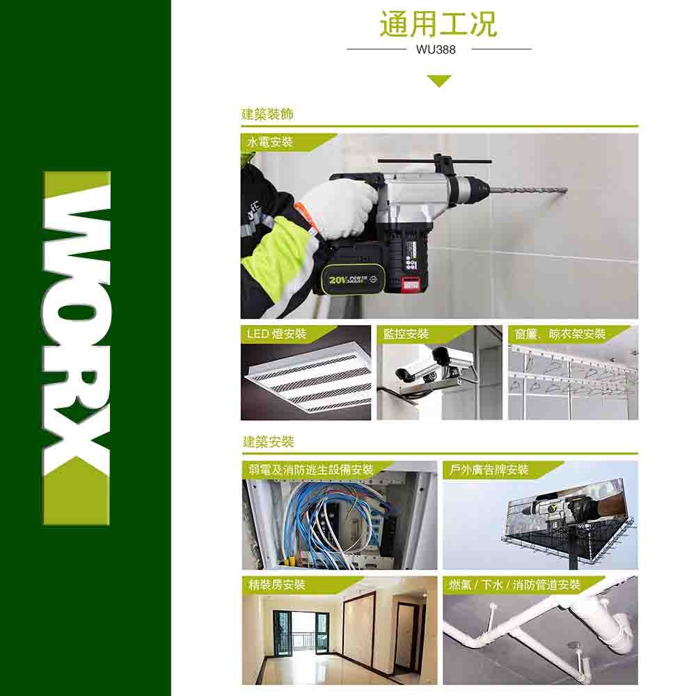 WORX 威克士 20V 24mm 三用鋰電無刷免出力鎚鑽 雙電套組(WU388.5) WU388.5