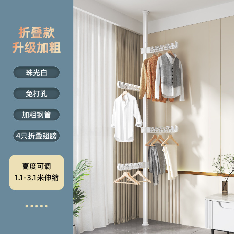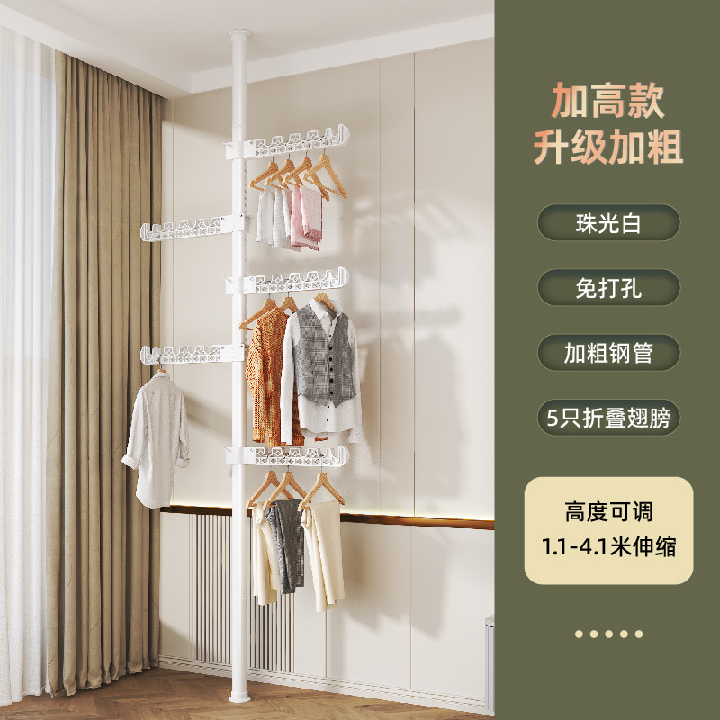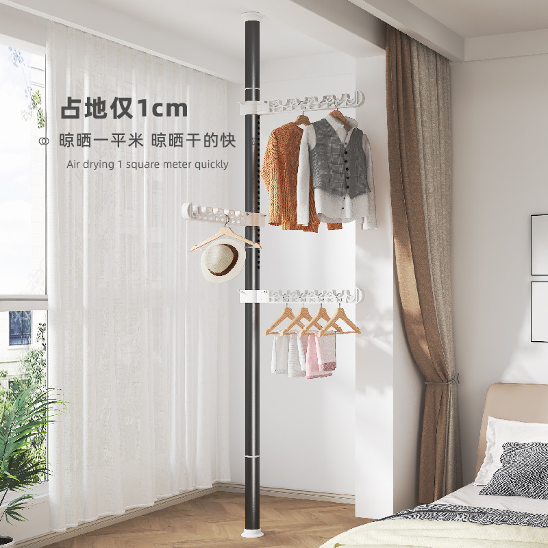 顶天立地晾衣架 家用落地卧室内免打孔伸缩杆 阳台窗口晒挂衣架神器 衣服掛衣架衣服掛架 免打孔伸縮桿衣架 嗮衣桿