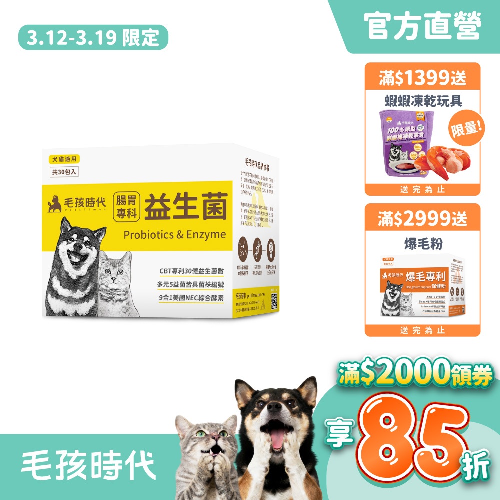 【毛孩時代】犬貓適用-貓狗腸胃專科益生菌<30包/盒>寵物益生菌-貓咪狗狗腸胃保健食品+30億益菌數+菌株編號-官方直營