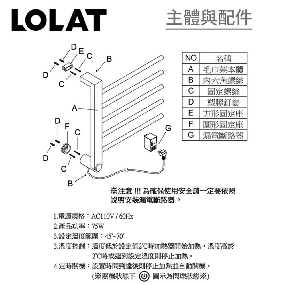 LOLAT 羅力 不鏽鋼電熱毛巾架 活動式電熱毛巾架 烘乾除濕抑菌 智能恆溫 A4132A-ZZH