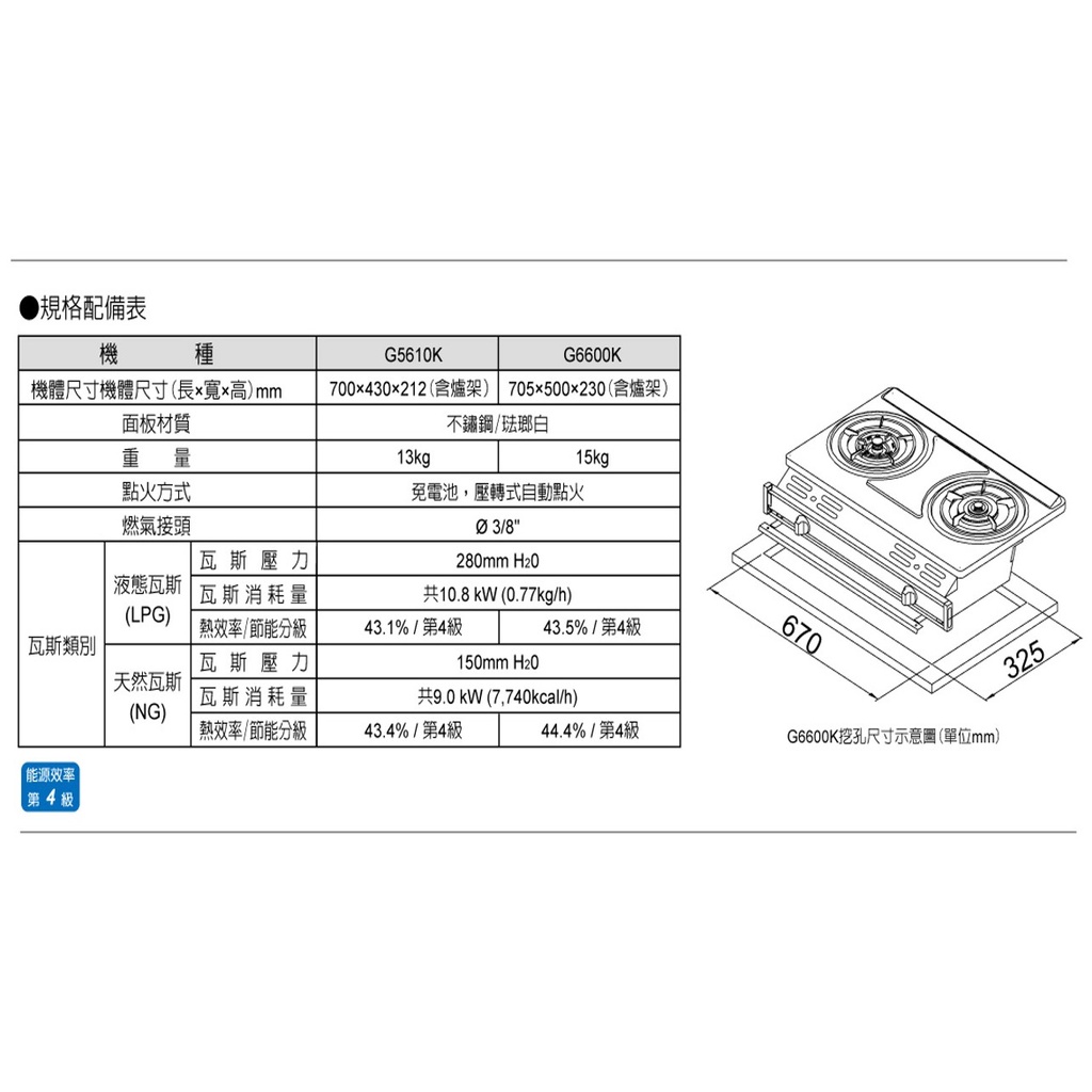 【SAKURA 櫻花牌】三環安全瓦斯爐 G-5610KS/6600KS (台爐/嵌入爐) 大火力熄火安全裝置 私訊可議價
