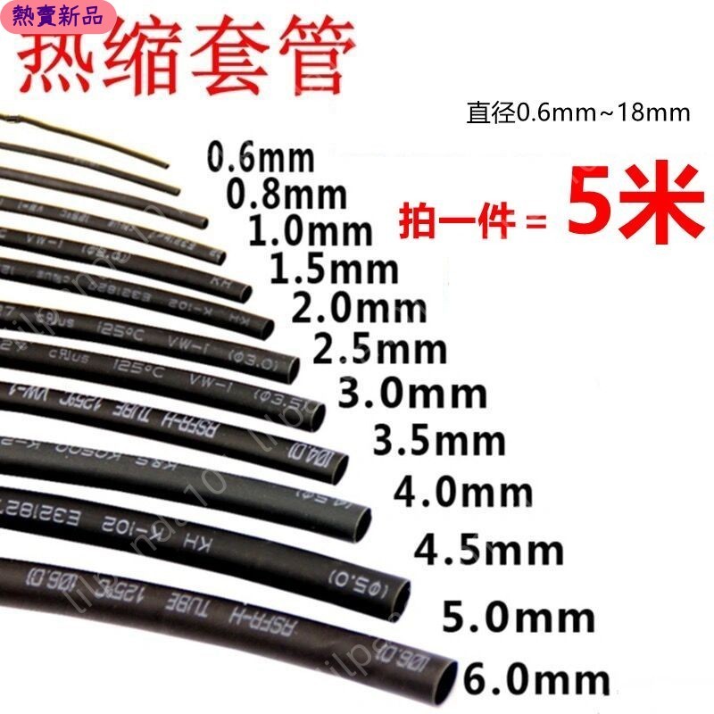 精選臺灣熱賣 優質熱縮管 黑色1/2/3/4/5/7/8/9/12/14/18/0.6mm 電工套管