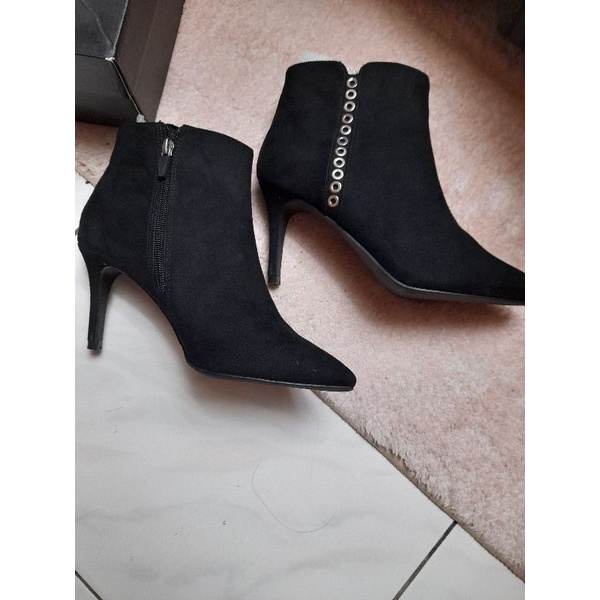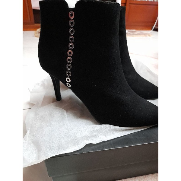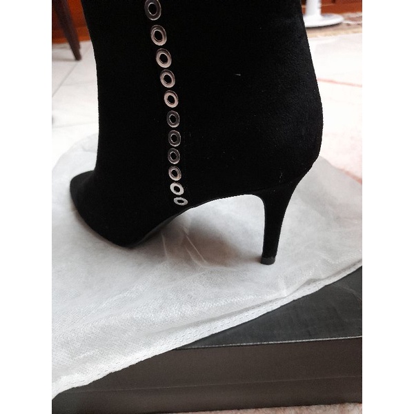 達芙妮DAPHNE( 二手)踝靴-鉚釘絨面尖頭高跟踝靴