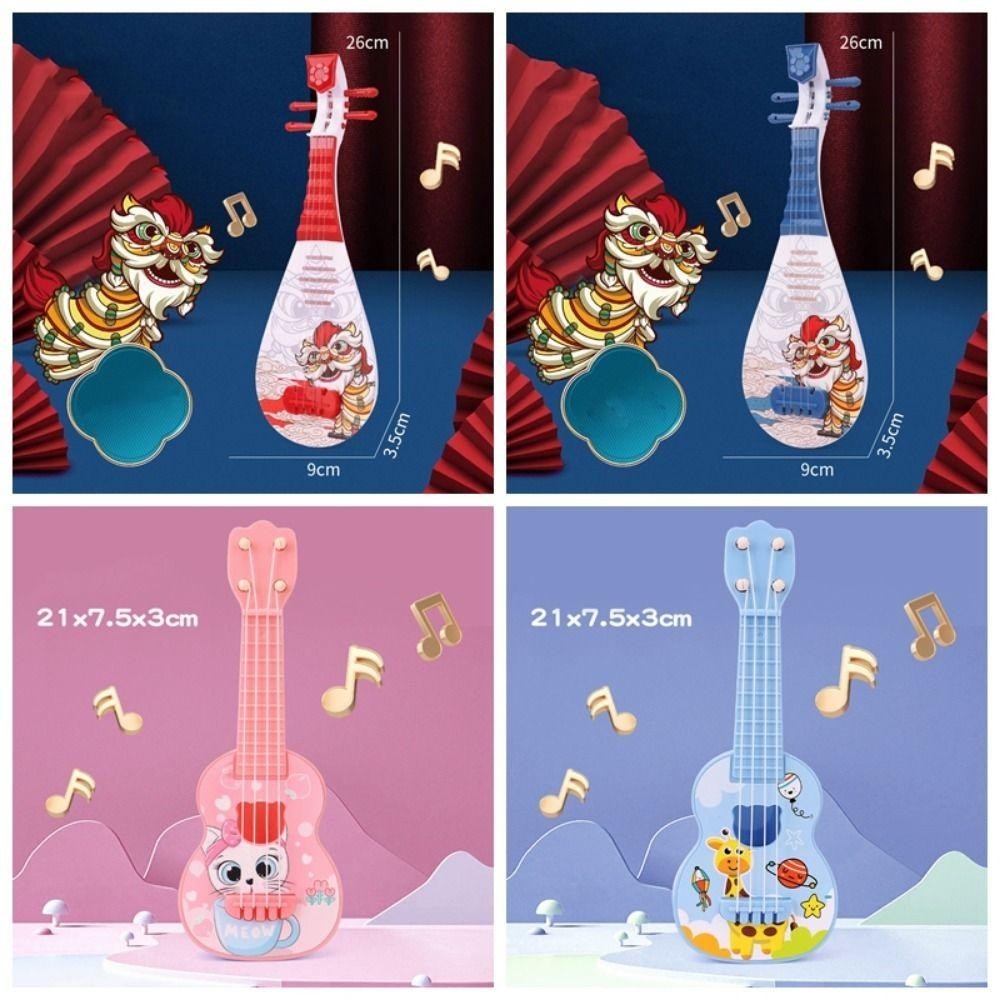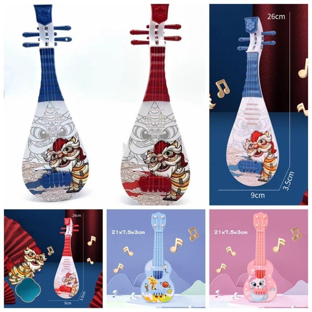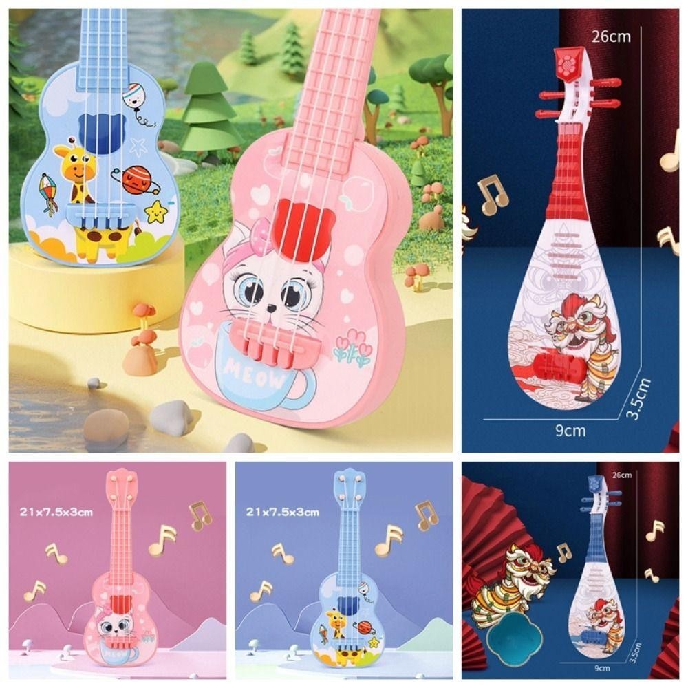 DARON仿真尤克里里玩具,舞獅可調弦旋鈕小吉他玩具,卡通動物古典可播放樂器玩具播放活動