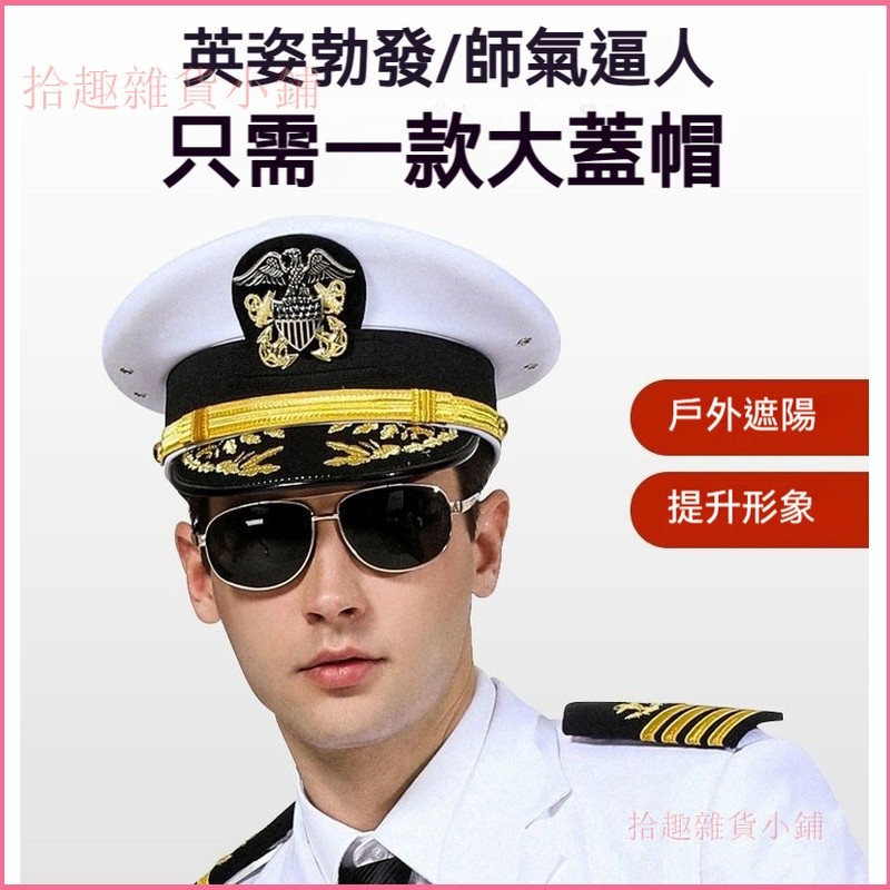 可開發票船长海员大盖帽团体大檐帽保安帽学校舞台演出帽子男女通用表演帽 保安帽子 帽子 大檐帽 鴨舌帽 作訓帽 平頂帽