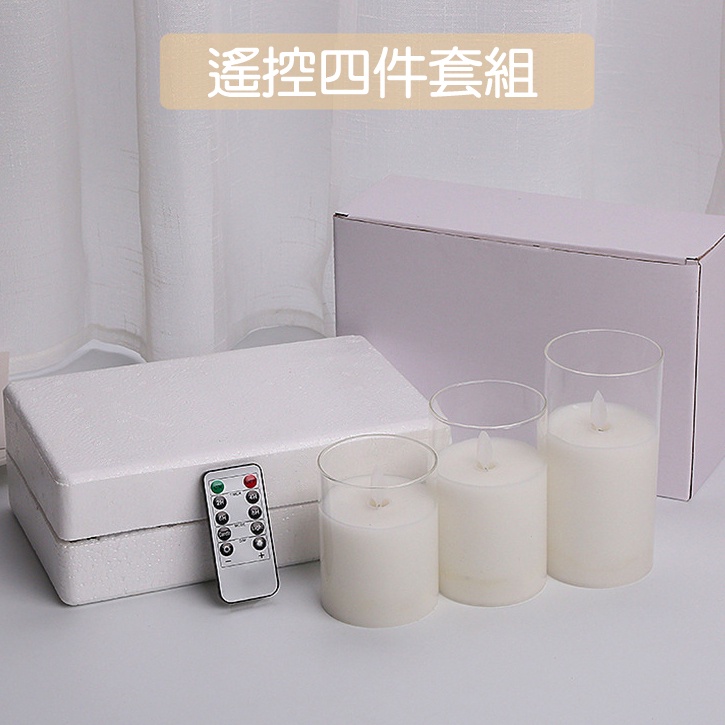 【開發票】LED遙控玻璃蠟燭四件套組 儀式感 交換禮物 搖控蠟燭燈 搖擺燈芯 假蠟燭 仿真蠟燭 求婚 聖誕節 跨年