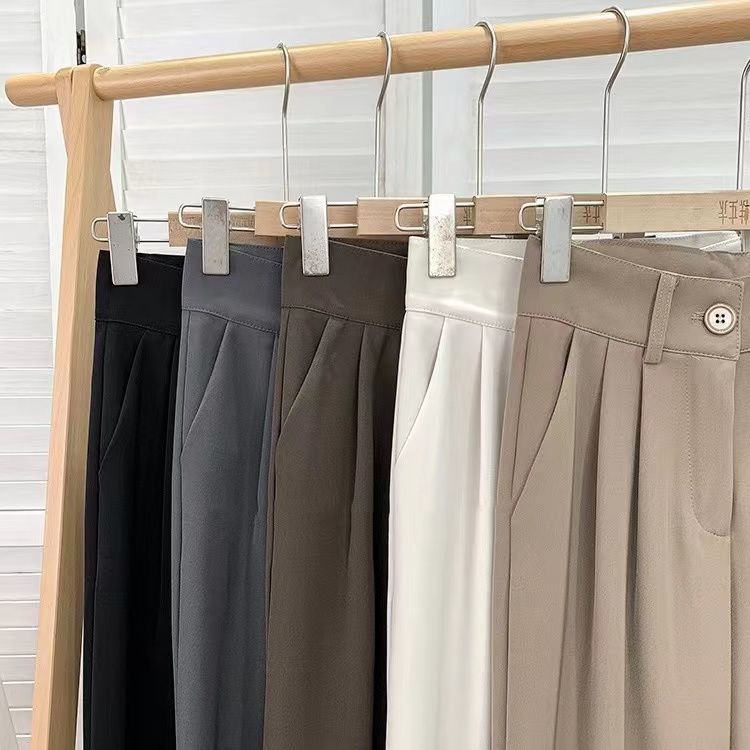 韓國百搭素色落地西裝褲女 2025年春夏季新款垂墜感氣質ins高腰西裝寬褲 寬鬆顯瘦拖地加長休閒褲 正韓闊腿女生西褲