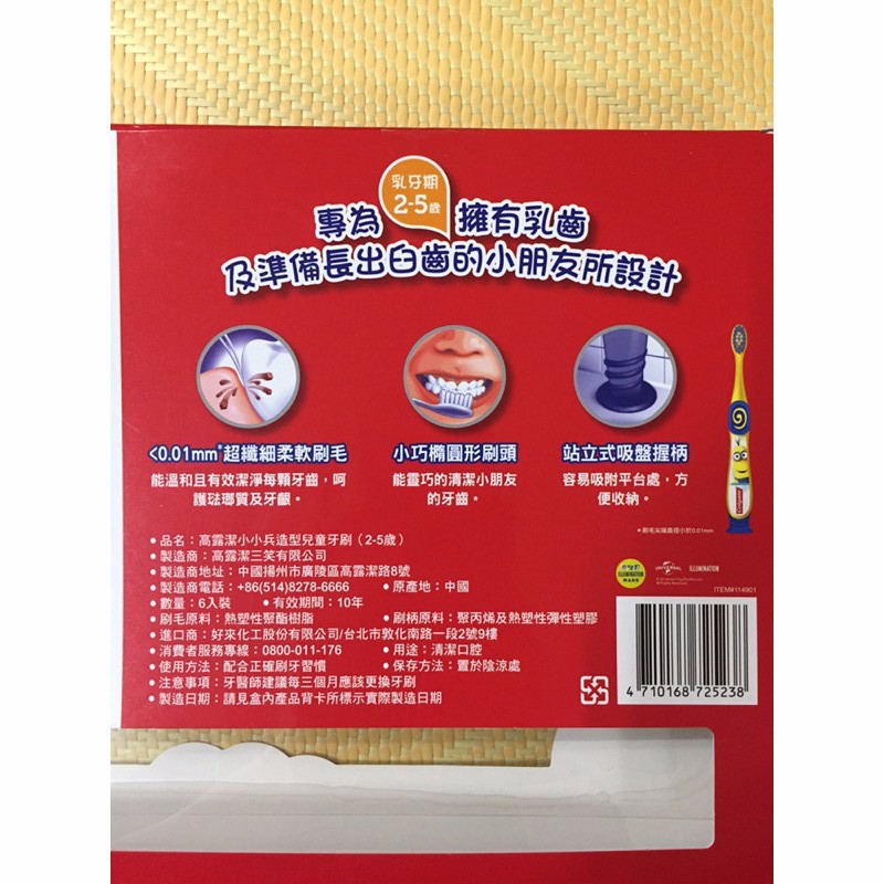 高露潔小小兵造型兒童牙刷 2-5歲 乳牙期