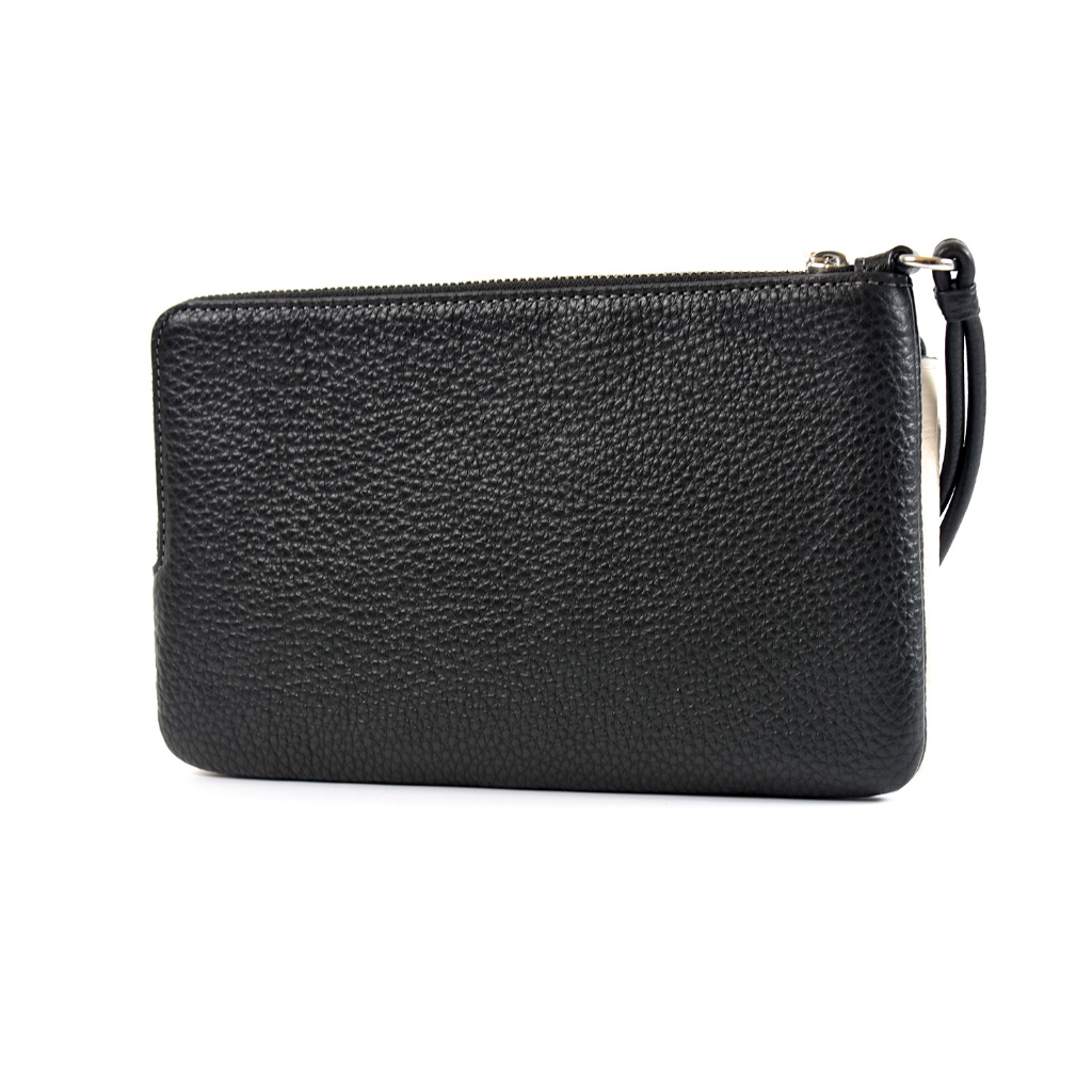 COACH 拚色荔枝紋大小雙層拉鍊大手拿包-黑/白【美國正品現貨】