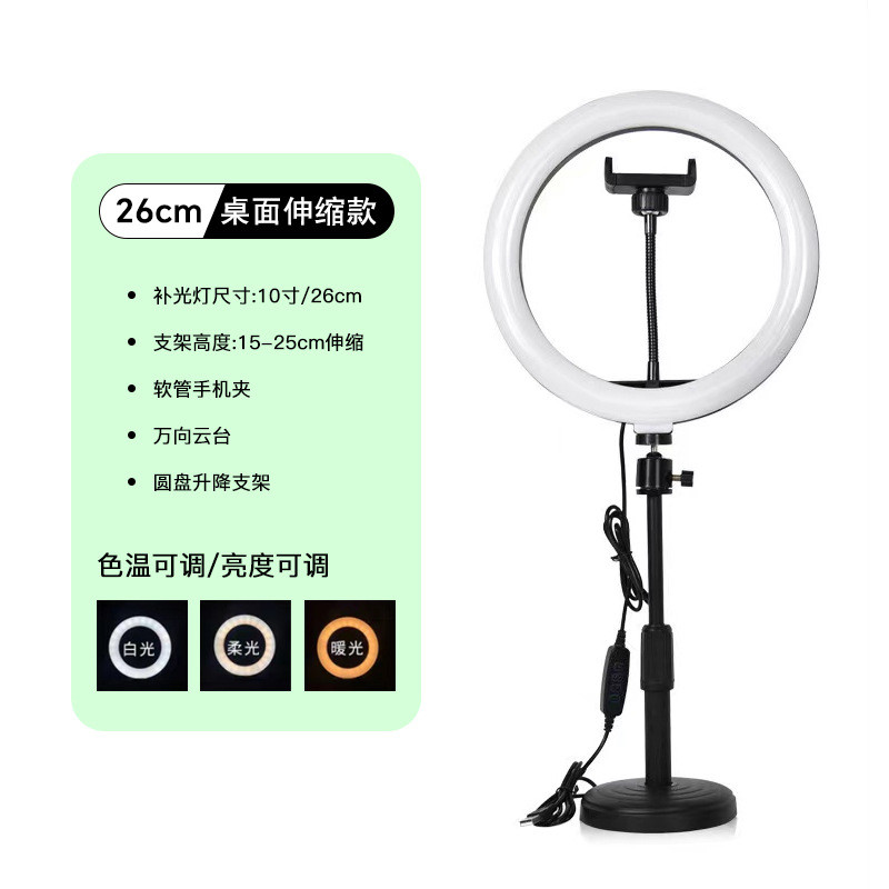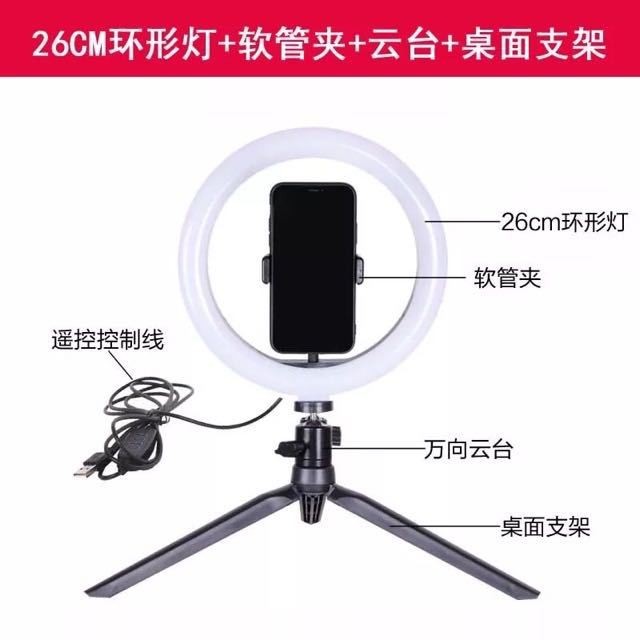 【熱銷】26cm美顏補光燈攝影自拍化妝打光LED桌面支架套裝10寸直播環形燈