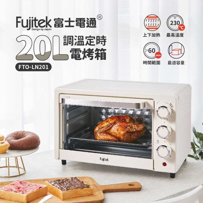 A-Q小家電 Fujitek富士電通 20L調溫定時電烤箱 電烤箱 烘焙烤箱 多功能烤箱 家用烤箱 FTO-LN201