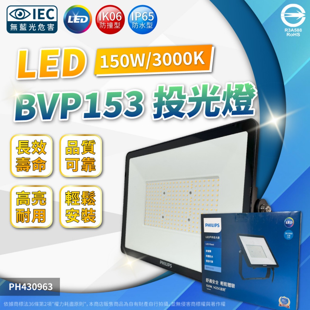 [喜萬年]飛利浦 BVP153 LED 100W 150W 200W IP65 投光燈 招牌燈 投射燈 工廠燈具 戶外燈