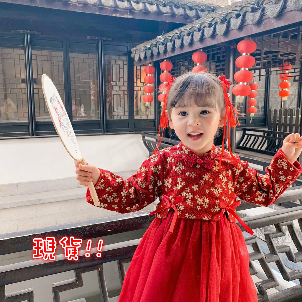 《芷靈童裝》現貨!!自留款加絨喜氣拜年中國風新年漢服旗袍套裝19120204-現貨加預購