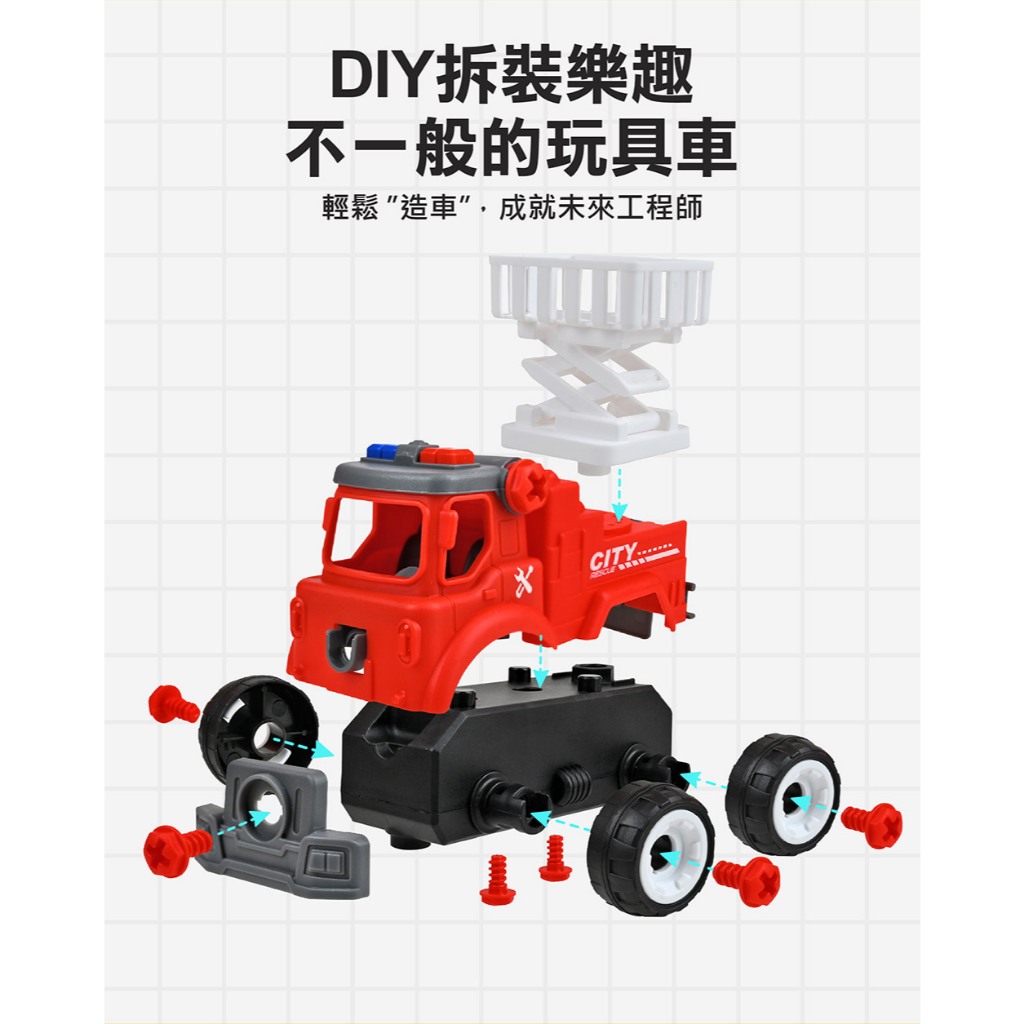 【風車圖書】FOOD超人-DIY拆裝城市車隊(DIY拆裝救援車) 雲梯消防車灑水車吊車警用拖吊車專注螺絲起子自行拆卸組裝