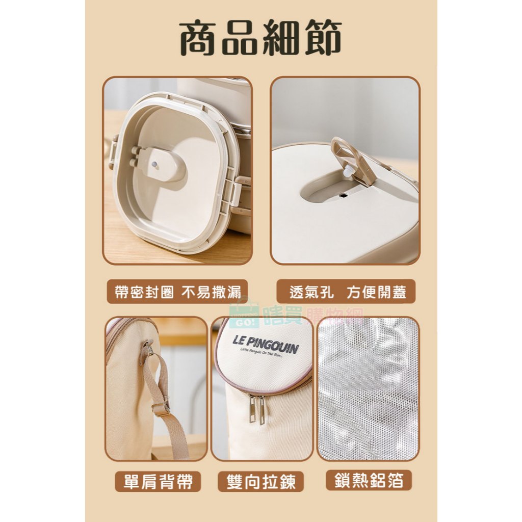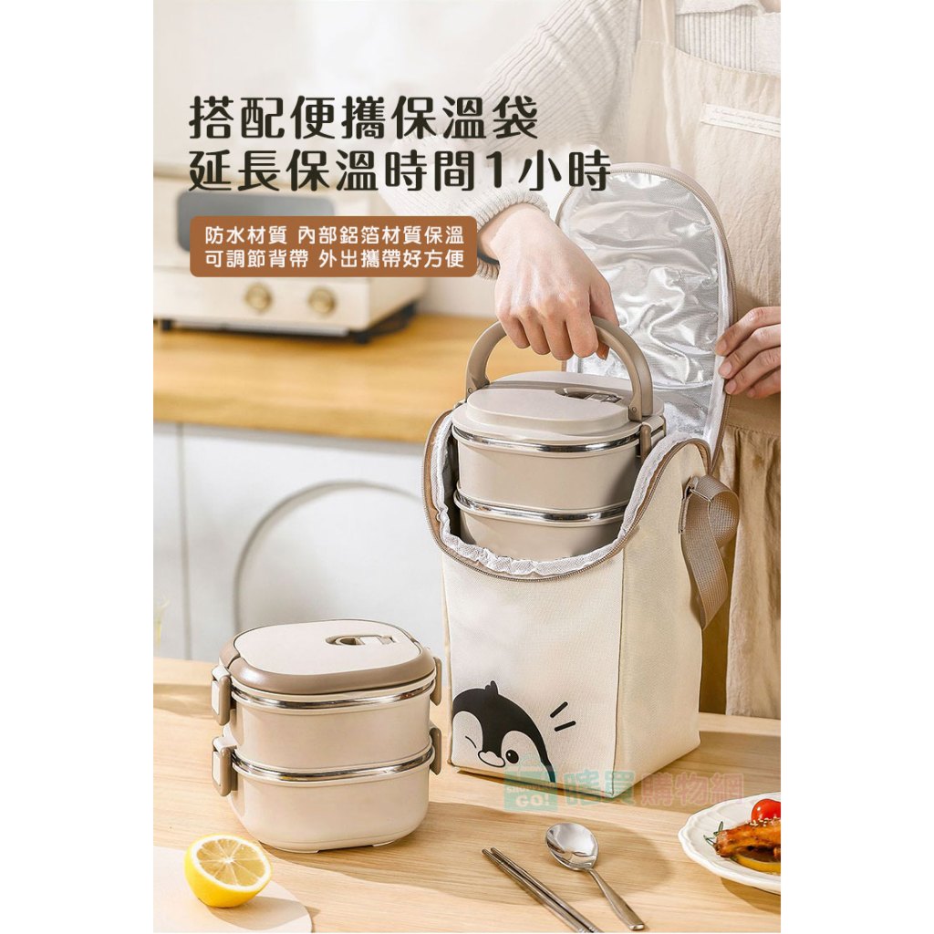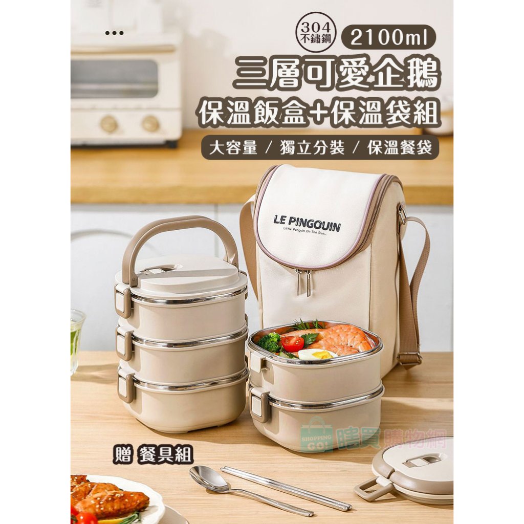三層可愛企鵝304不鏽鋼保溫飯盒+保溫袋組 (2100ml) 保溫碗 湯罐 餐盒 便當盒 餐碗 餐盒 露營 野餐必備