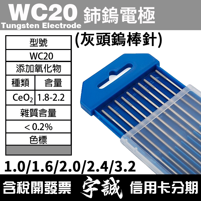 【宇誠】WC20鈰鎢電極灰頭鎢棒1.0/1.6/2.4/3.2*150/175MM氬焊TIG氬弧焊WC鎢針