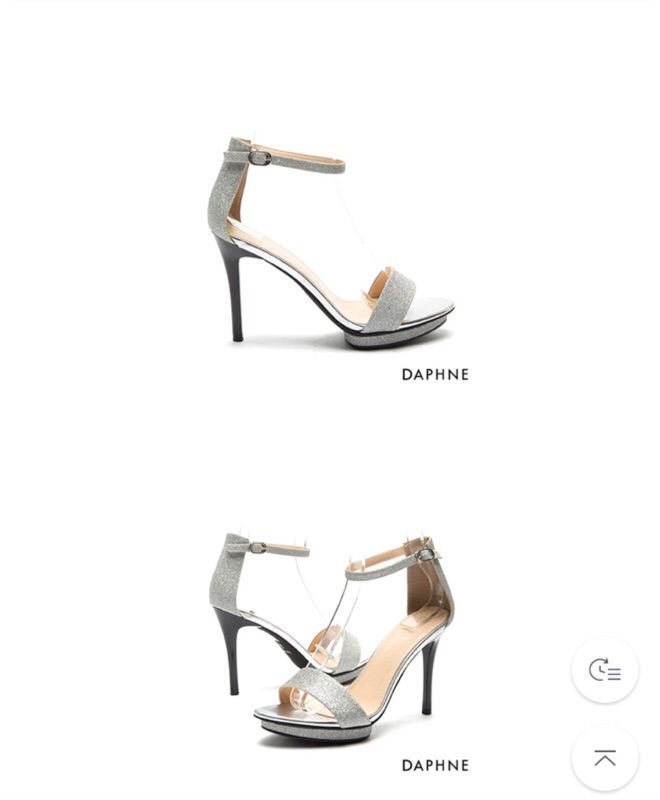 【DAPHNE 達芙妮】官網$1736!根本仙度瑞拉✨前高後高金蔥一字高跟涼鞋—銀色/23.5尺碼