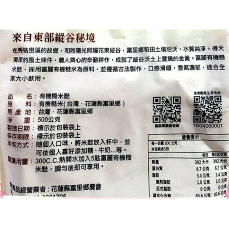 【富里農會】富麗有機糙米麩 500公克/包