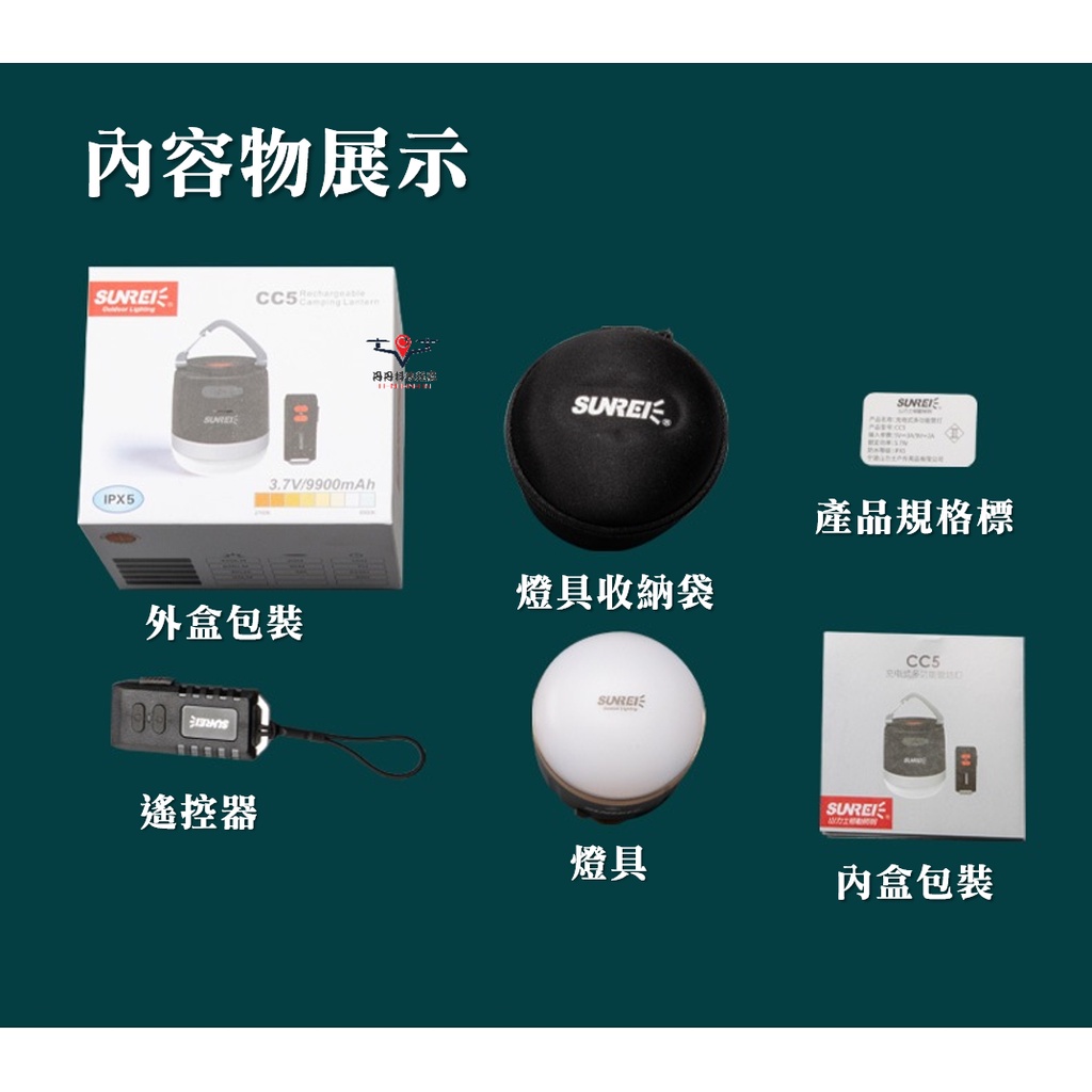 【24H出貨/台灣出貨】戶外照明燈 露營燈 戶外燈 cc5 帳篷燈 充電露營燈 營地燈 SUNREI 山力士 cc5