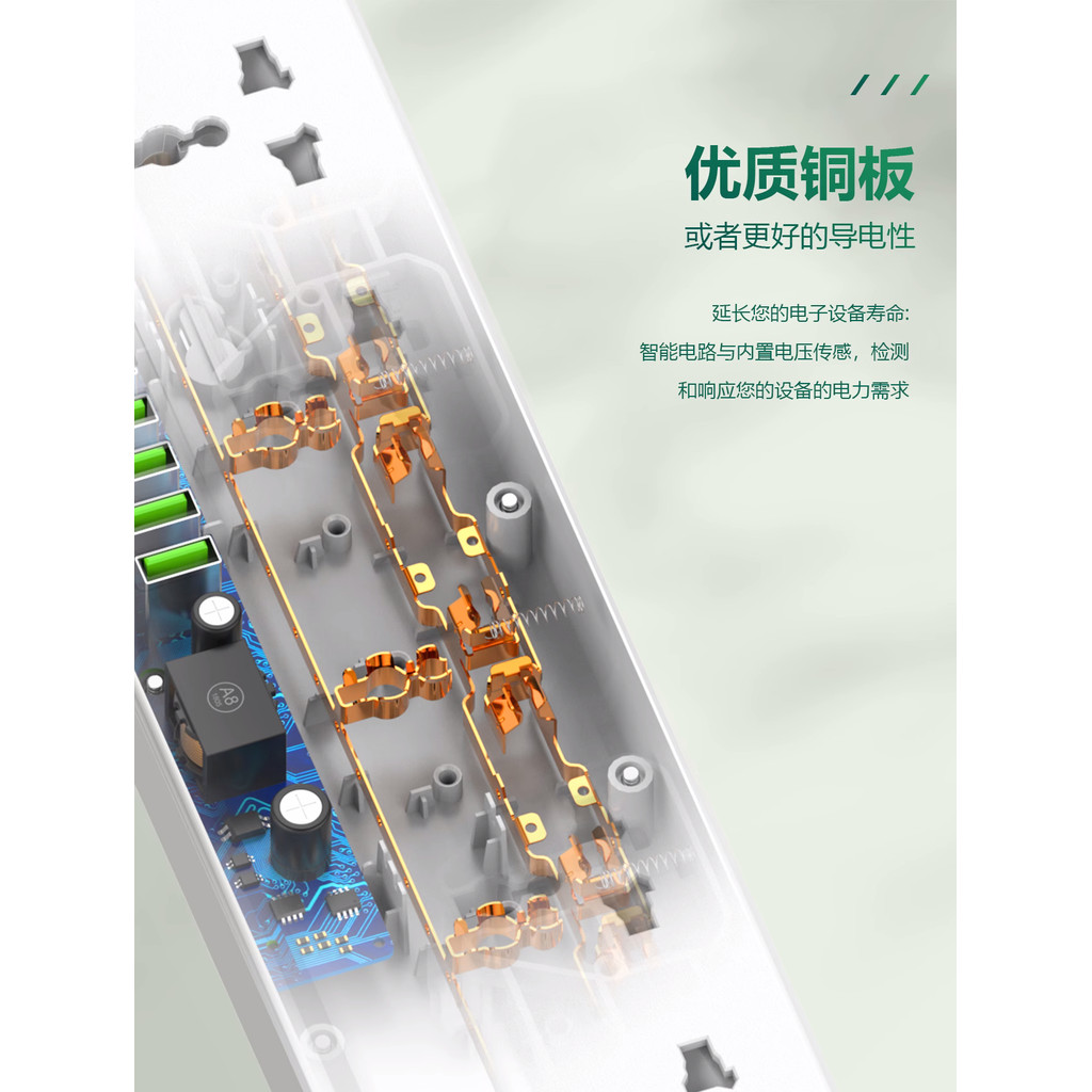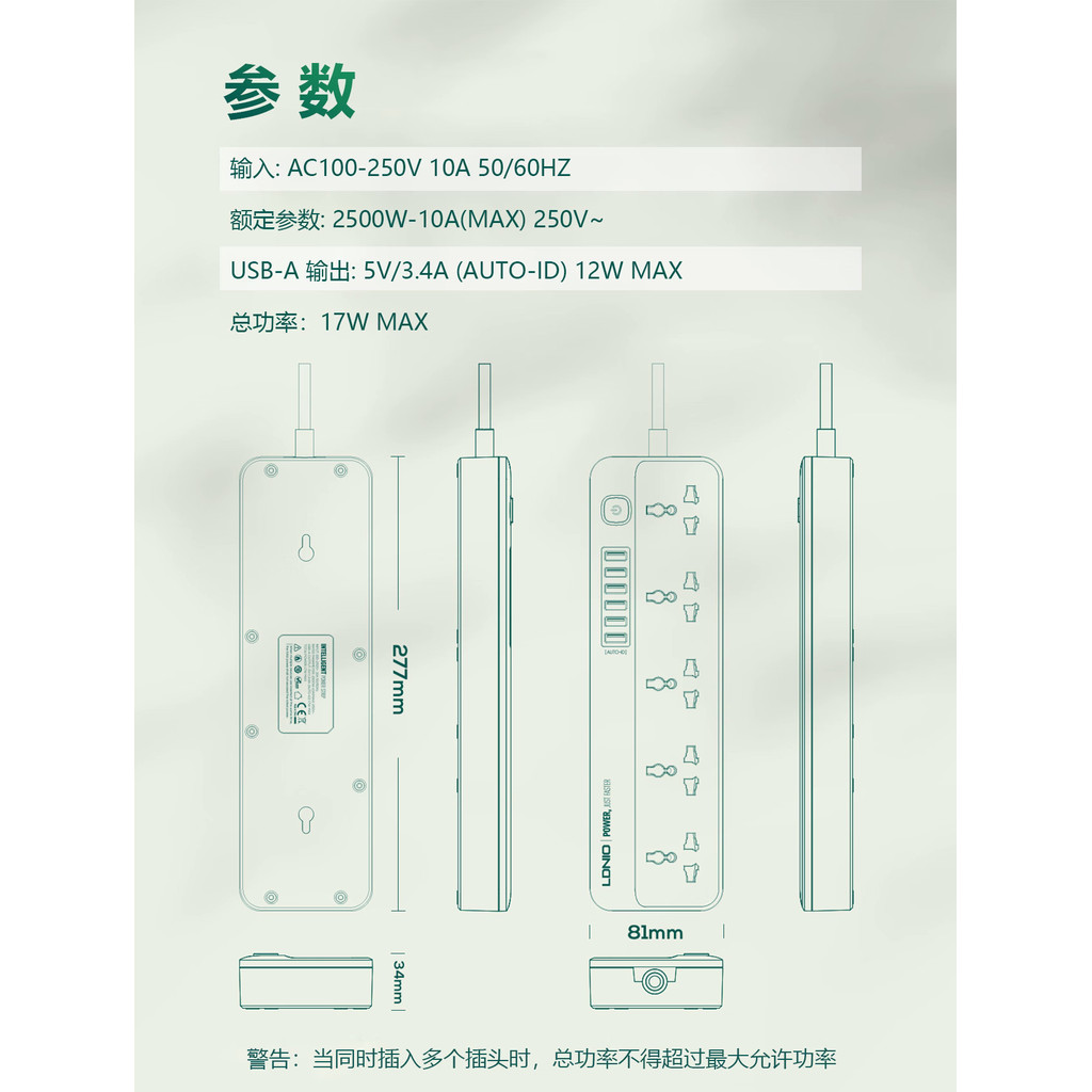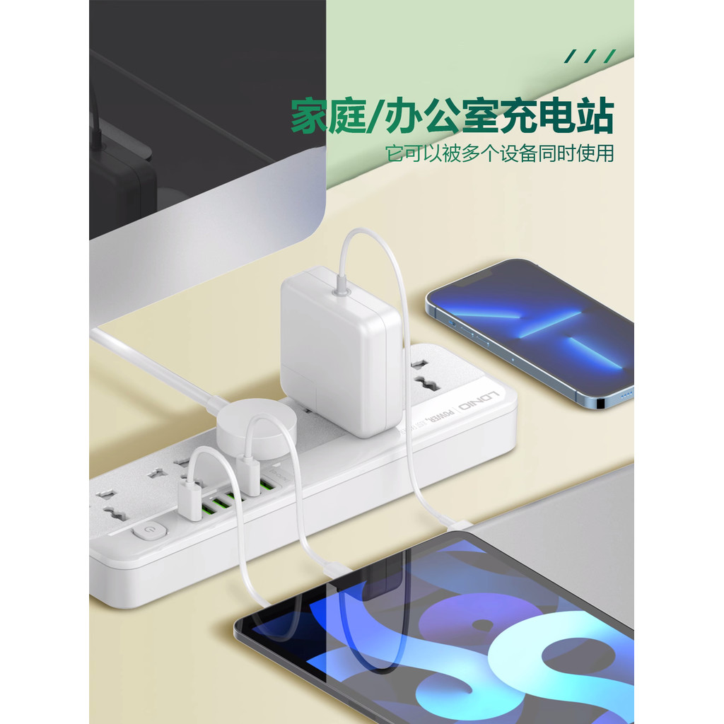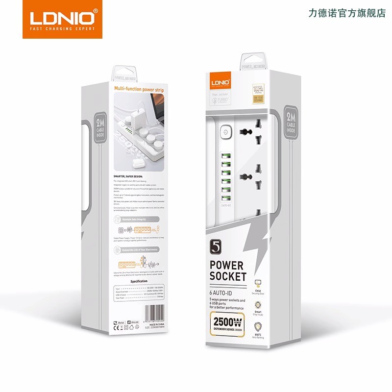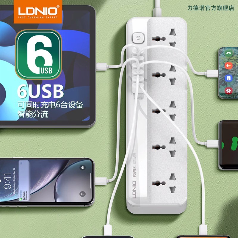 LDNIO力德諾延長線插座拖線板 5通用插孔+6USB插孔 2米線長 二插臺灣美規插頭 英規歐規電腦旅行接線板