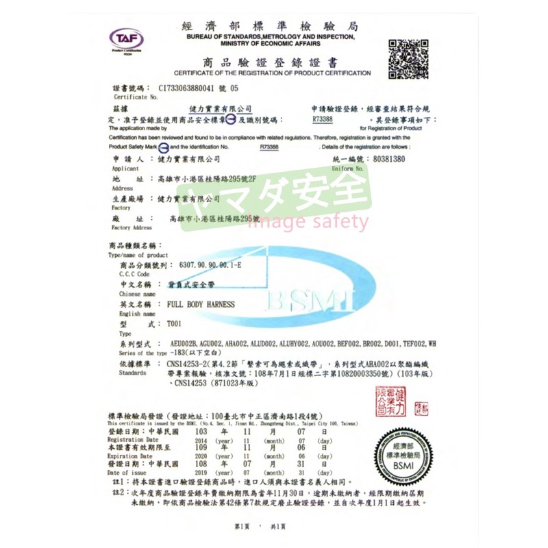 【開立發票】台灣製 巨力 扁帶繩雙大鉤 緩衝包 O型環+降落傘式安全帶 全身式 背負式安全帶 BEF002