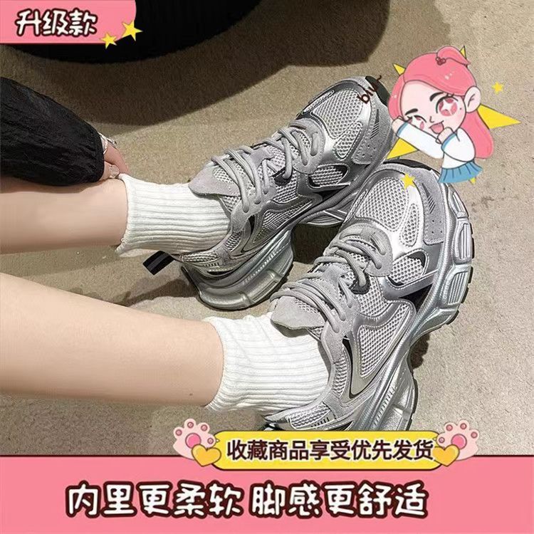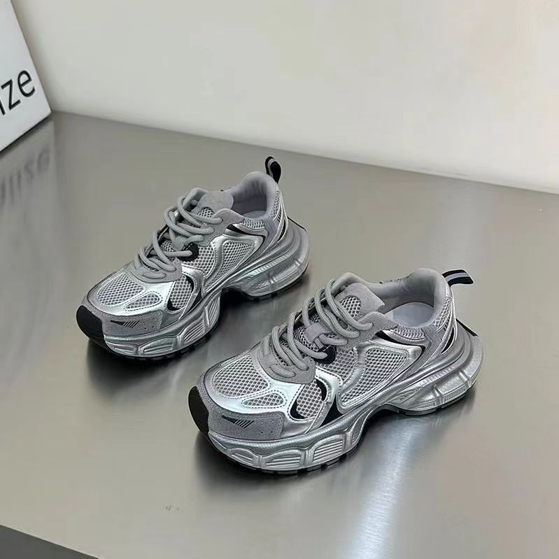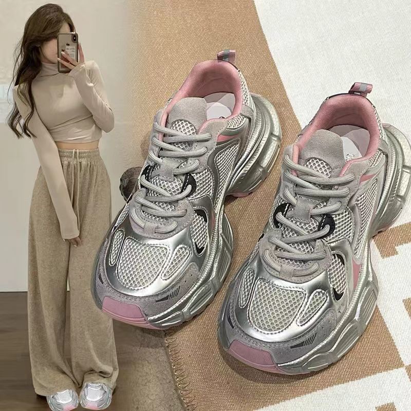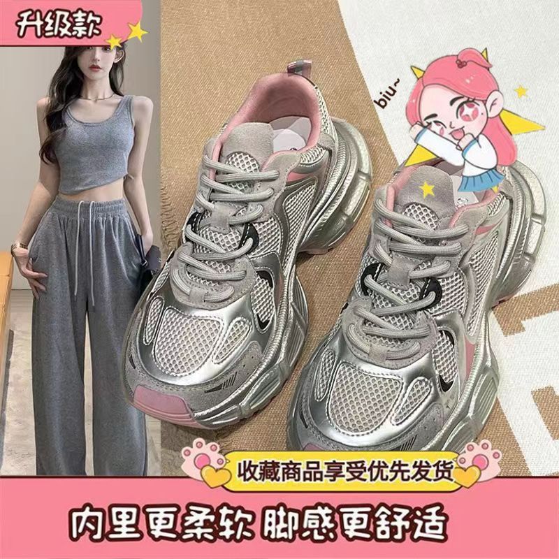 女運動休閑鞋厚底增高老爹鞋女款年夏季新款銀色透氣百搭輕便運動休閑鞋子