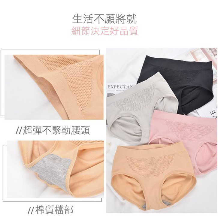 Onedays✿ 3D蜂巢暖宮純棉內褲 提臀手托女內褲 包臀收腹無縫中腰內褲 高腰內褲 暖宮內褲 孕婦內褲 C895