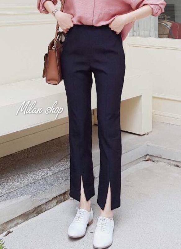 全新轉賣韓國歐膩家copiner高質感前開岔彈性高腰細腿褲—黑色S