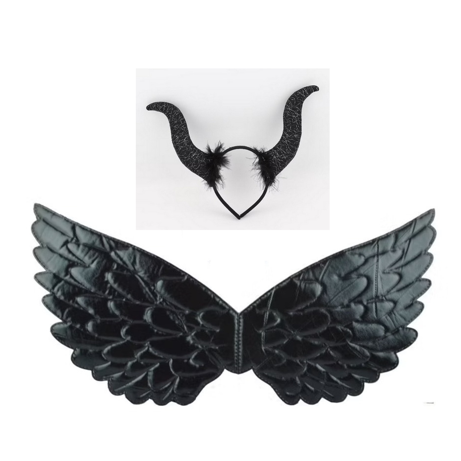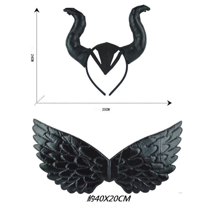 快樂商店-萬聖節服裝/配件/天使配件/黑天使翅膀/黑色翅膀/惡魔翅膀/黑色惡魔角/黑魔女髮箍/黑魔女裝扮組/惡魔裝扮組