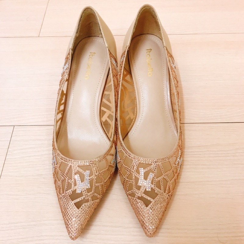 降價!Itaballa香檳金鏤空亮片閃耀新娘婚鞋