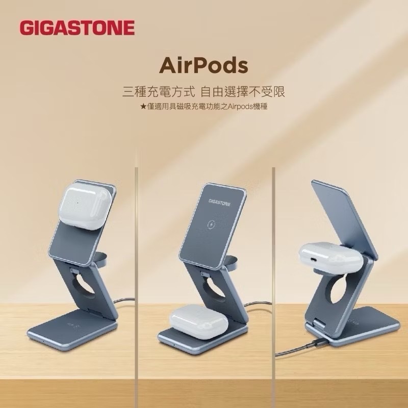 【Gigastone】三合一 23W折疊式磁吸無線充電座(WP-9330G)支援手機/耳機/手錶充電