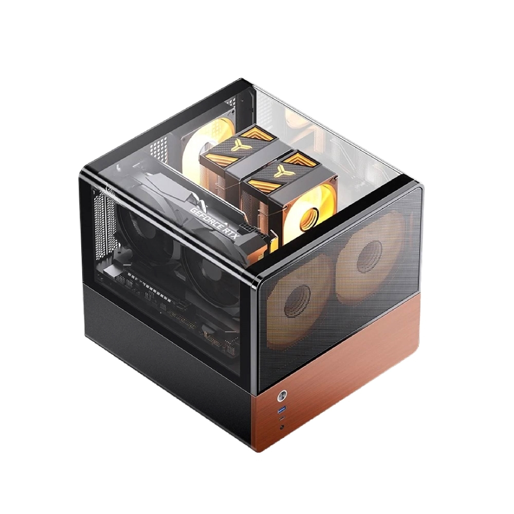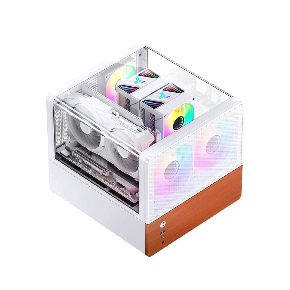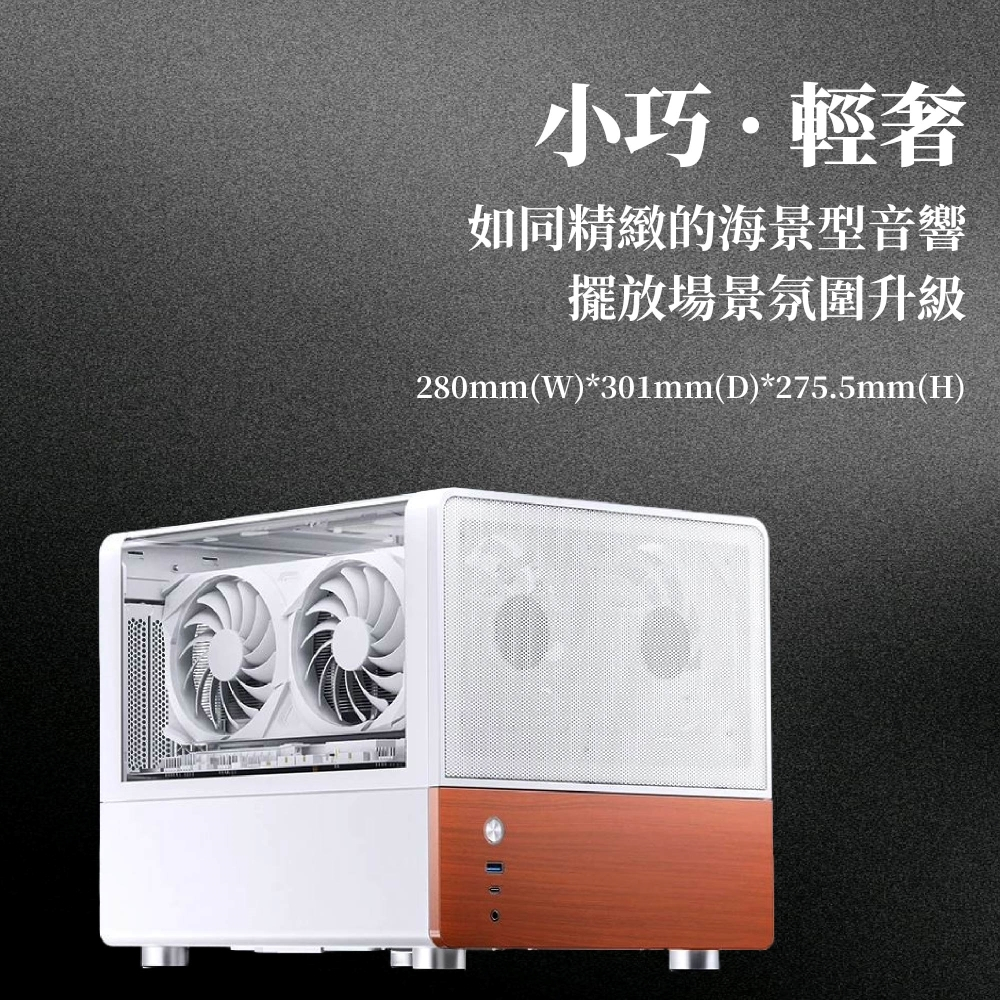 【Jonsbo】V12 一體式雙曲面玻璃臥式機殼 黑/白(MATX/分艙橫躺/內建2無限鏡風扇/胡桃實木)