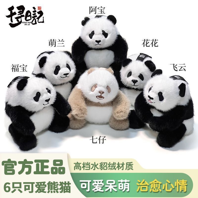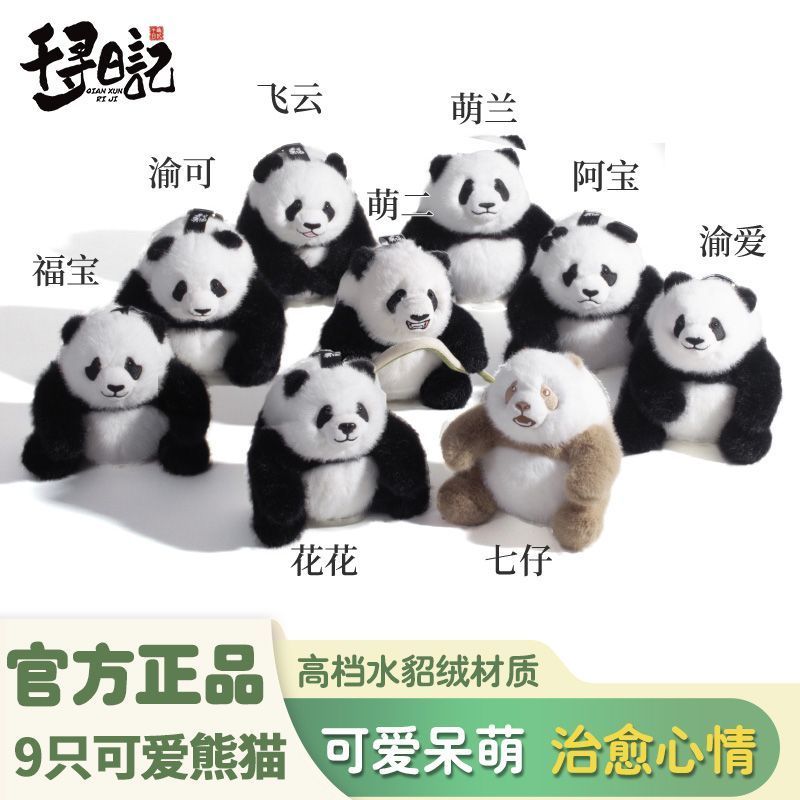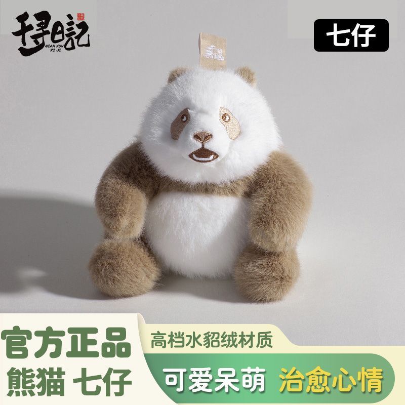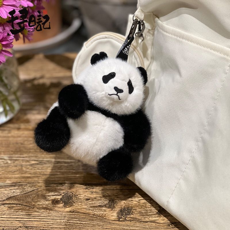 可愛熊貓毛絨玩具玩偶掛件花花七仔揹包鑰匙掛扣 仿真公仔玩具