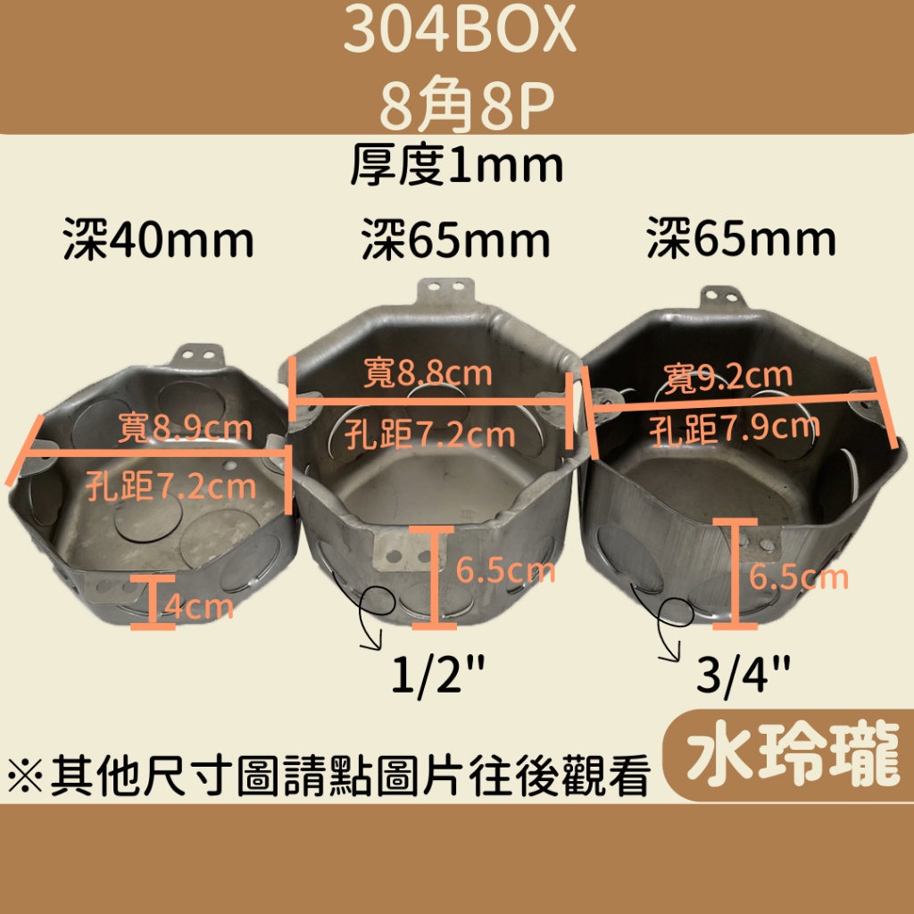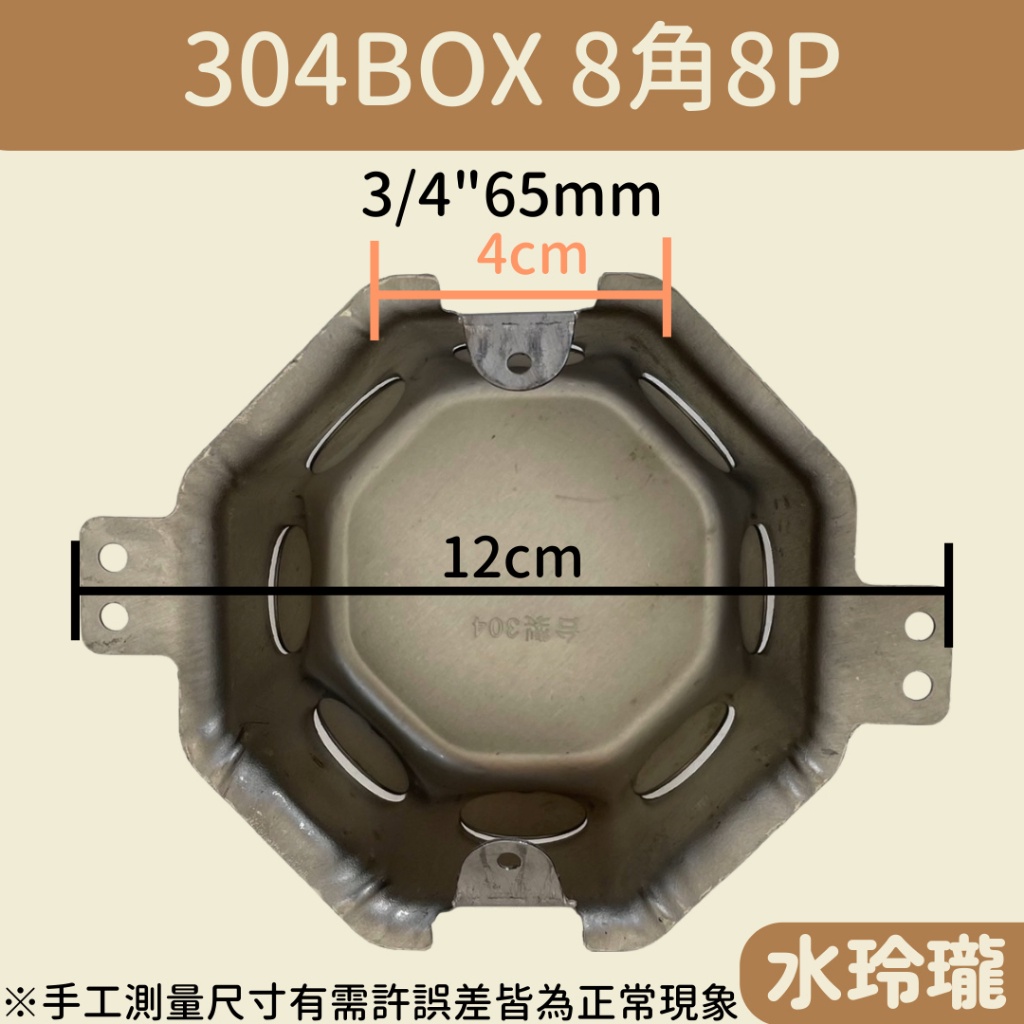 【水玲瓏】304BOX 8角8P 4分孔 6分孔 接線盒 出線盒 電線盒 埋入式 配線盒 內外耳接線盒 鐵盒 線盒 配線