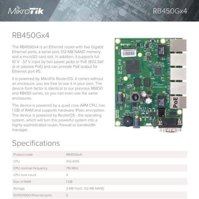 【RouterOS台灣代理】台灣公司貨 MikroTik RB450Gx4 四核心路由器, 弱電箱專用不過熱~